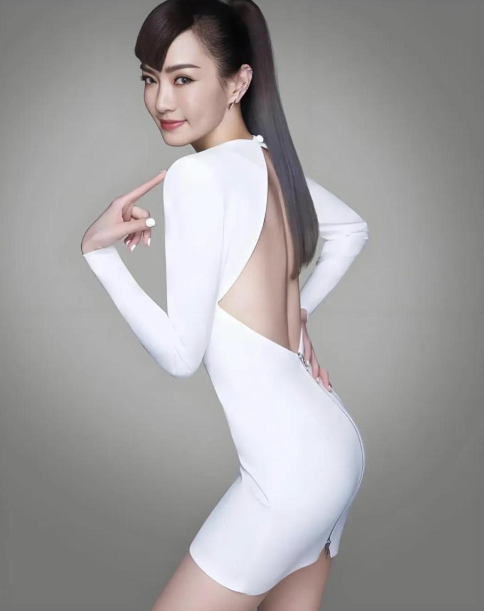 如今 54 岁的她看起来也就 40 出头,皮肤紧致,头发浓密,削肩细腰薄背,身姿挺拔。